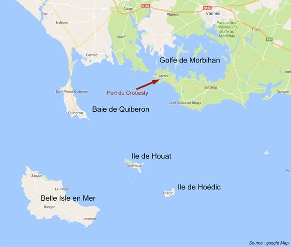 Le secteur est vaste du Golfe du Morbihan à la baie de Quiberon et ses iles Houât et Hoëdic et le secteur de Belle ile en Mer.